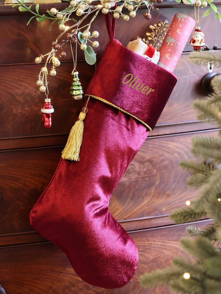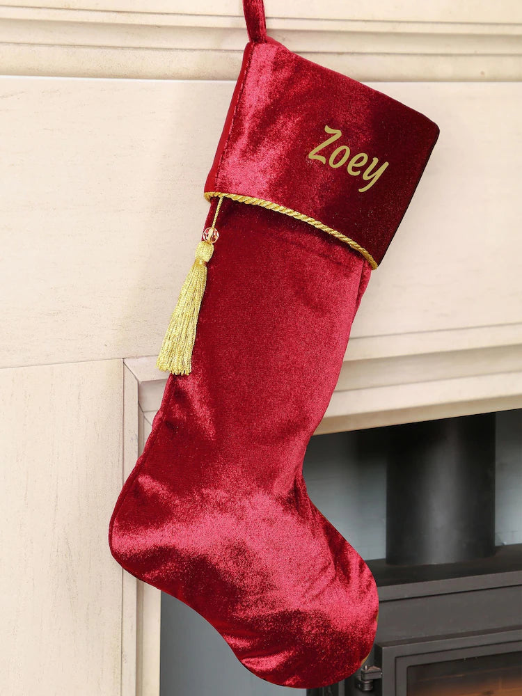 Personalised Kensington Red Velvet Christmas Stocking by Dibor
